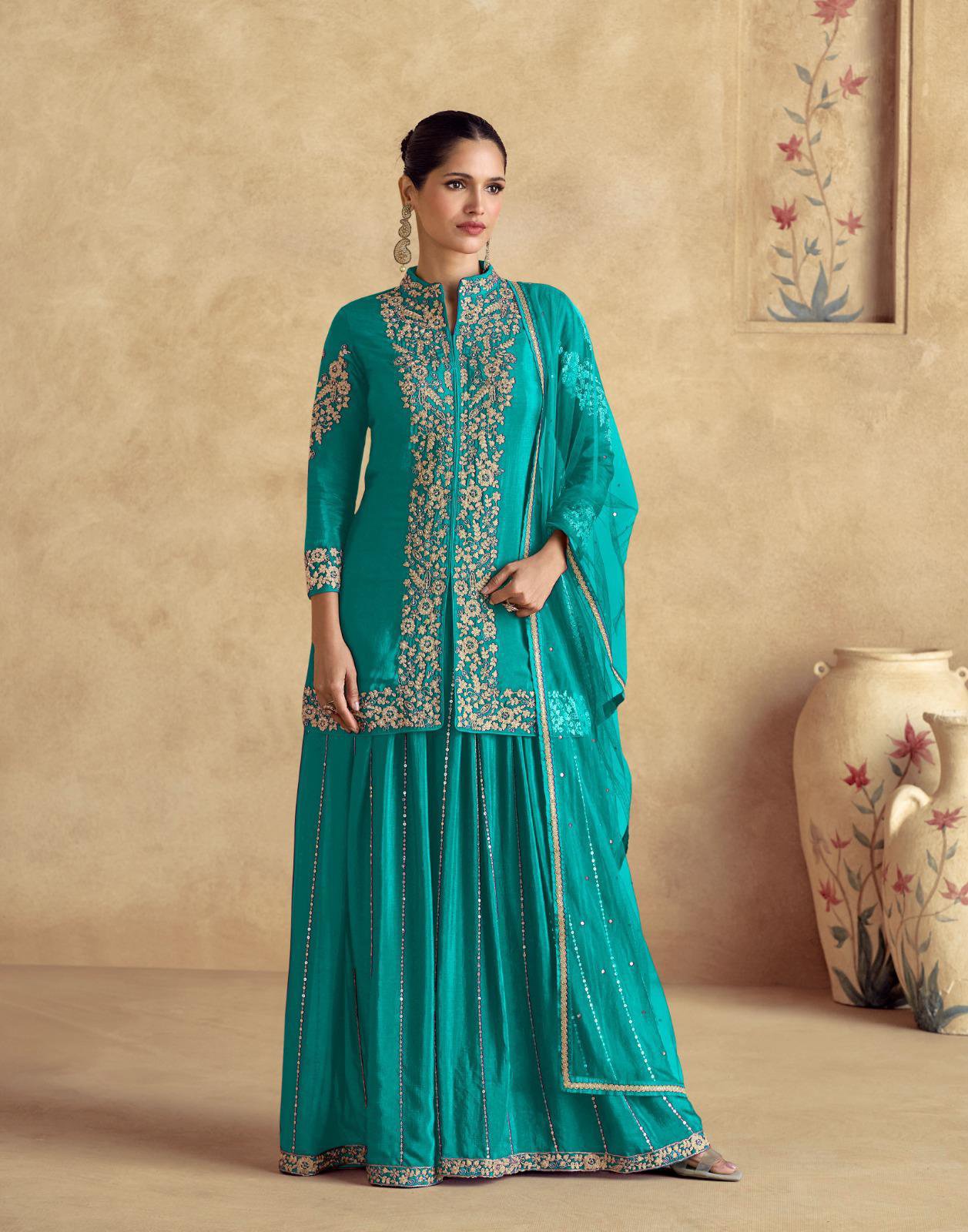 Any questions related to AASHIRWAD CREATION CHAKORI GOLD 10234 SERIES FREE SIZE PREMIUM CHINNON SILK PLAZZO SETS?