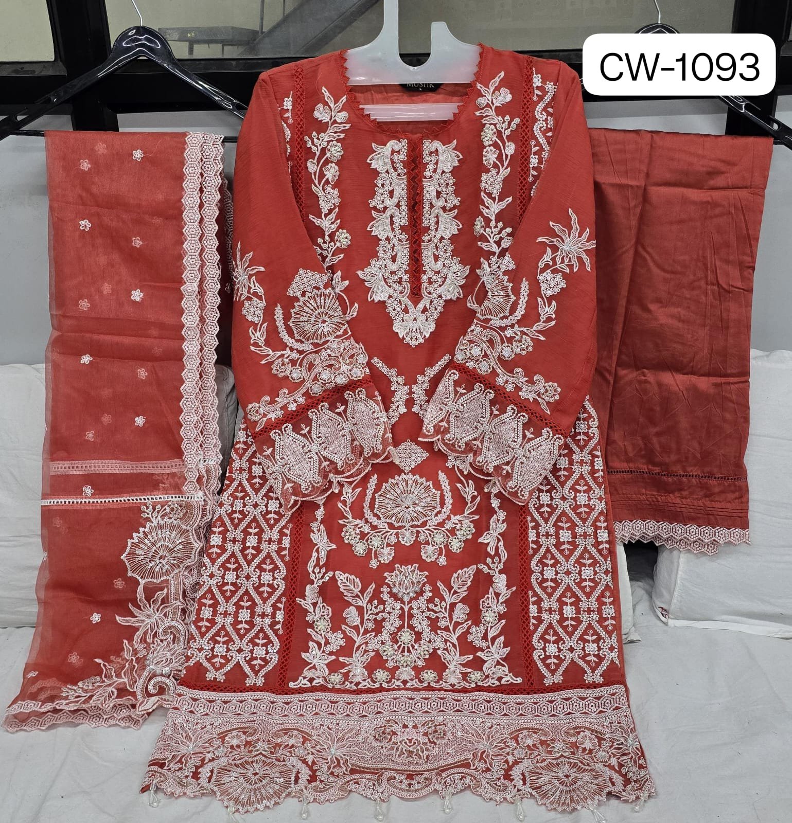 Top -Crystal Chiffon & handwork khatli With Cutwork Embroidery with GPO Less attached with viskos santoon enner with latkan