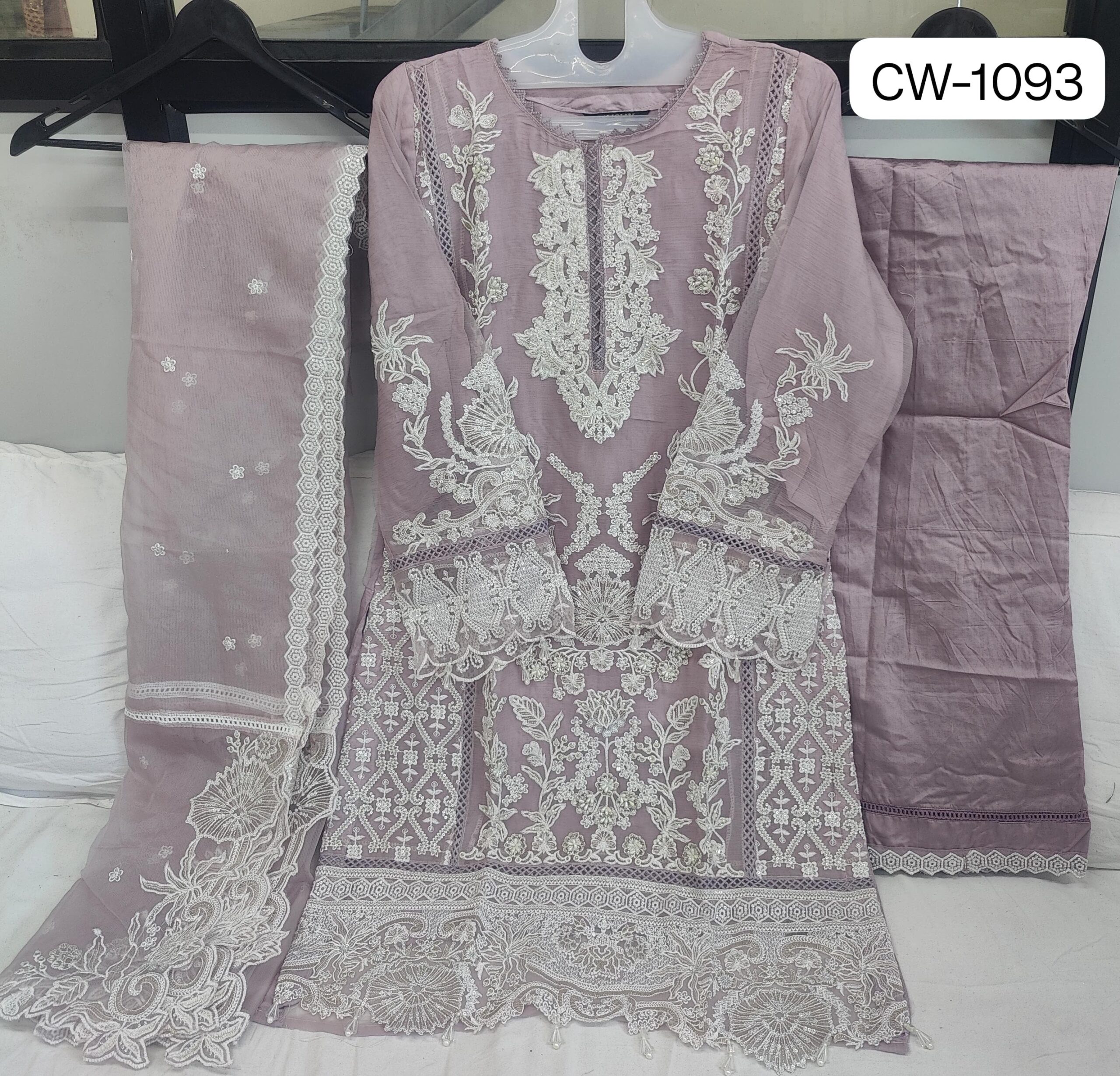 Top -Crystal Chiffon & handwork khatli With Cutwork Embroidery with GPO Less attached with viskos santoon enner with latkan