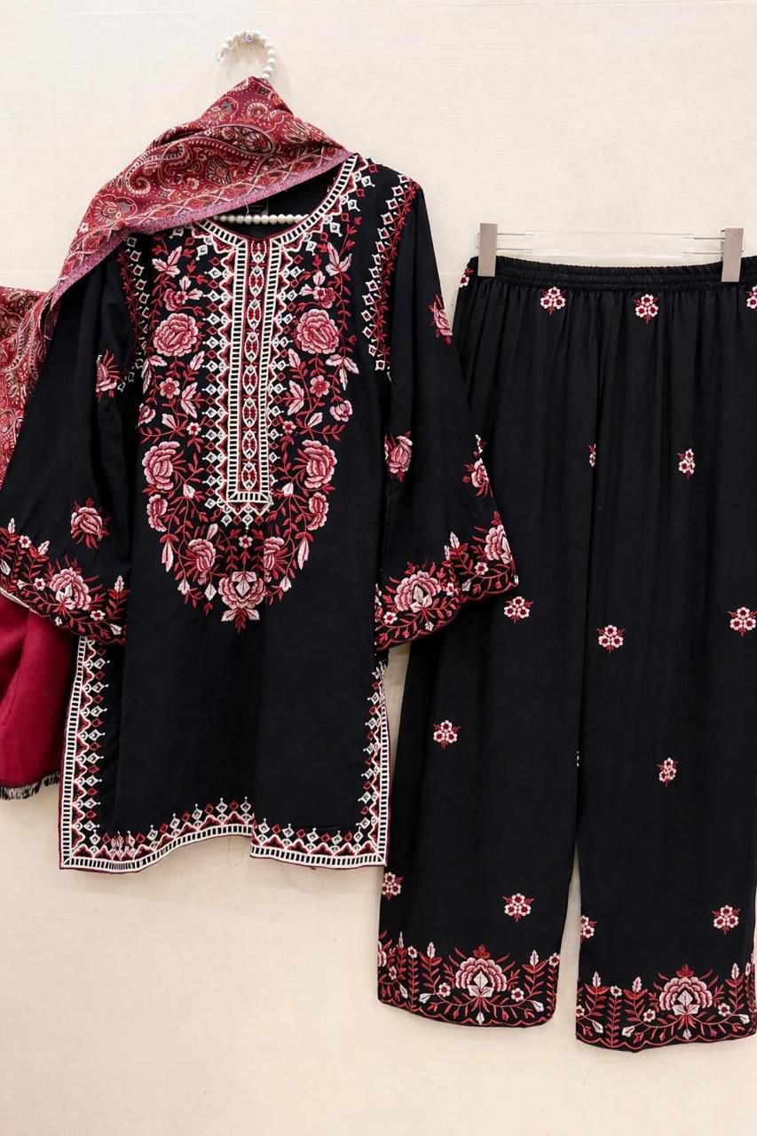 NEW LAUNCH VERY VIRAL ARTICLE EXQUISITE PREMIUM EMBROIDERED WORK WITH KASHMIRI SHAWL 3 PC WEAR